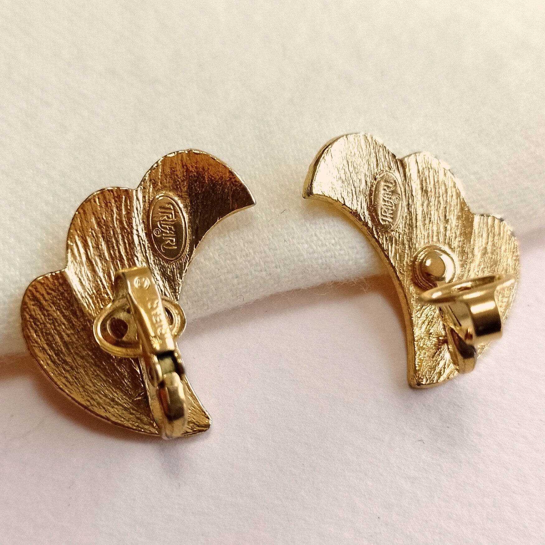 Gesigneerde clipoorbellen van verguld metaal in sierlijk gevleugeld ontwerp uit de jaren '70-'80. Gesigneerd op de achterzijde en clip: 'Trifari ©'.