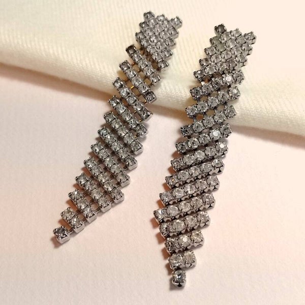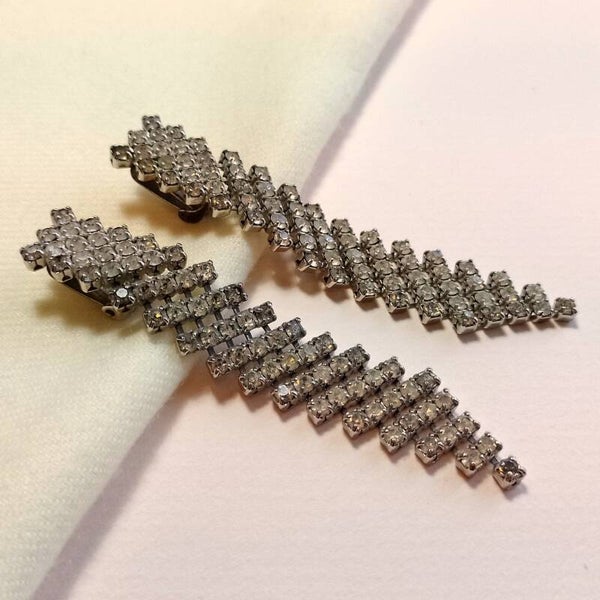 Vintage clipoorbellen van zilverkleurig metaal en heldere strass uit de late jaren '70-'80.