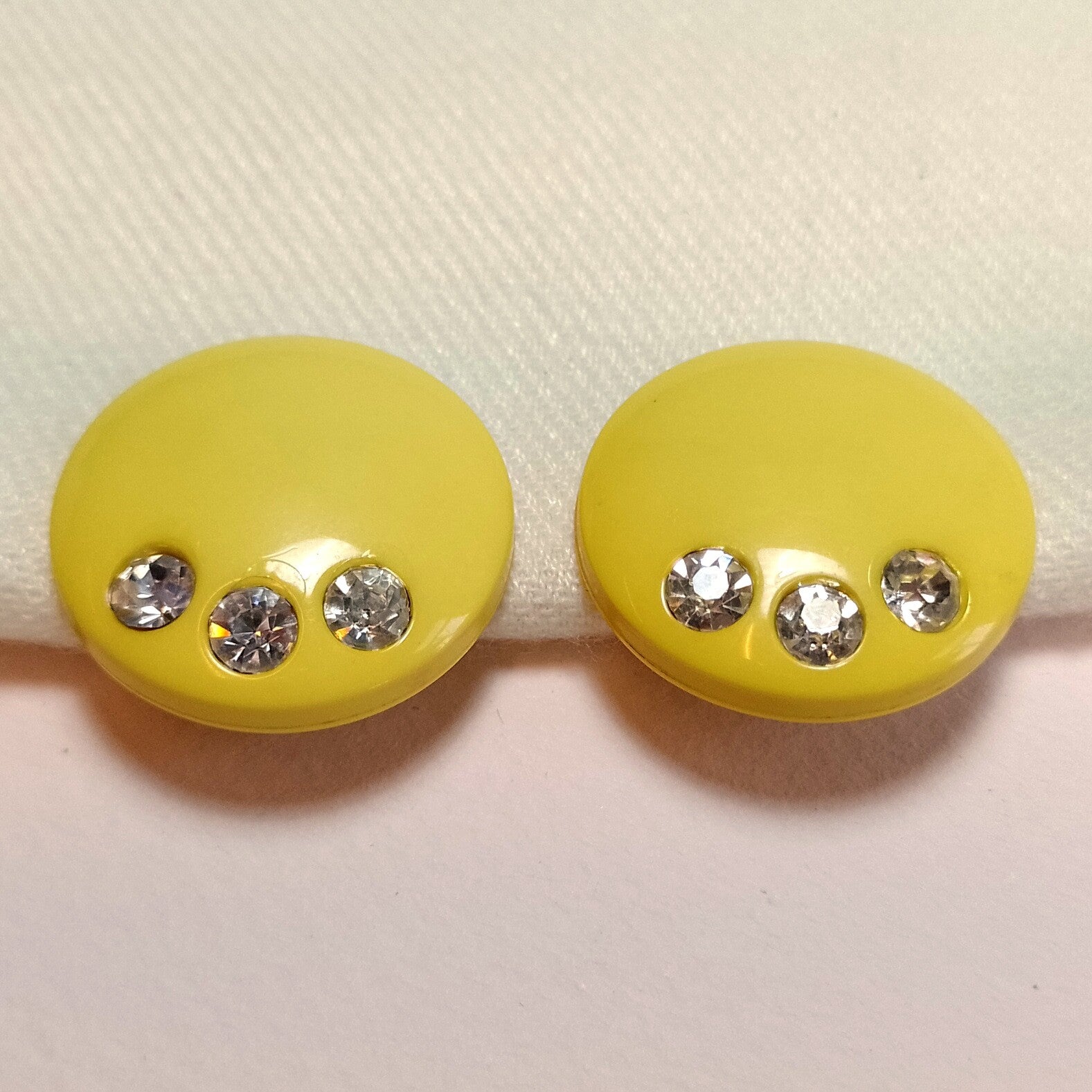 Ronde vintage clipoorbellen van geel kunststof met heldere strass uit de jaren '80.