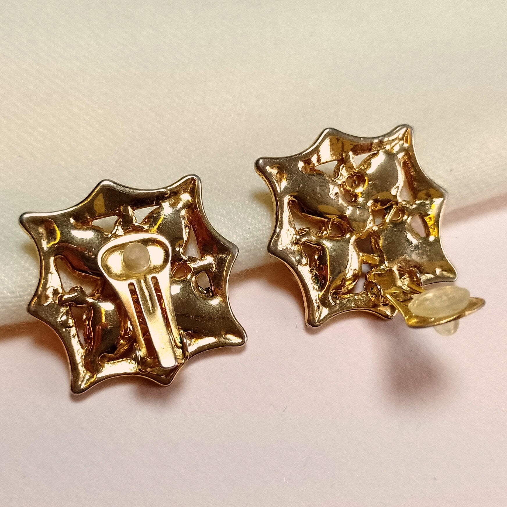 Vintage oorclips van verguld metaal bezet met bonte glazen cabochons uit de jaren '80.