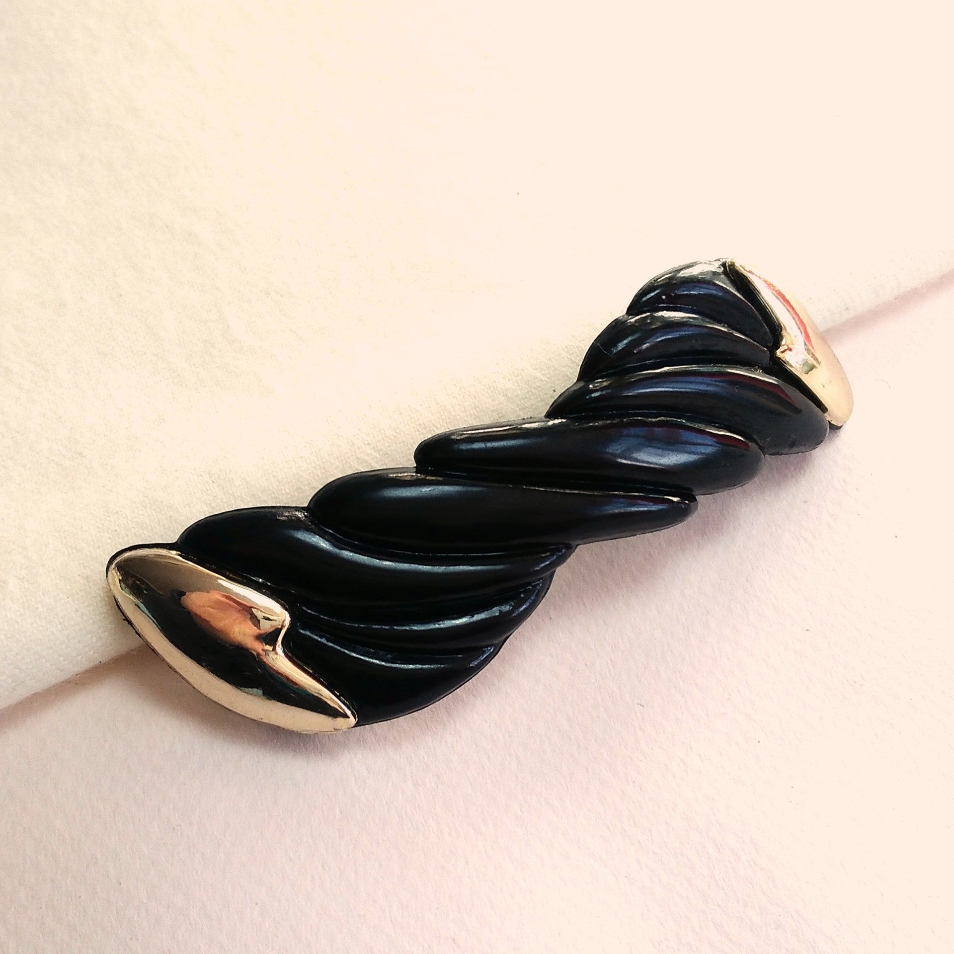 Old Stock zwarte-zilveren gewervelde kunststof haarclip uit de jaren '80.