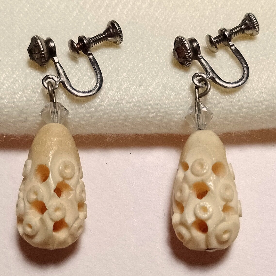 Vintage schroefoorbellen met strass en benen, gesneden kegeltjes uit de jaren '60.