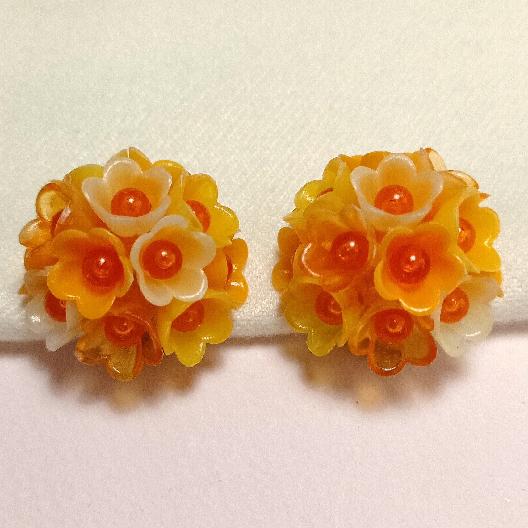 Vintage clipoorbellen met kunststof oranje bloemetjes uit de jaren '80.