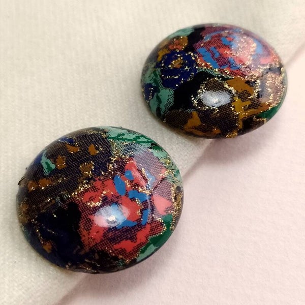 Vintage clipoorbellen met veelkleurige print en glitters uit de jaren '80.