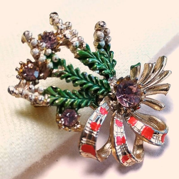 Vintage broche met samengebonden Schotse heide en lila strass uit de jaren '40-'60