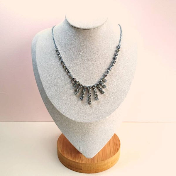 Vintage zilverkleurige ketting met heldere strass uit de jaren '70-'80.