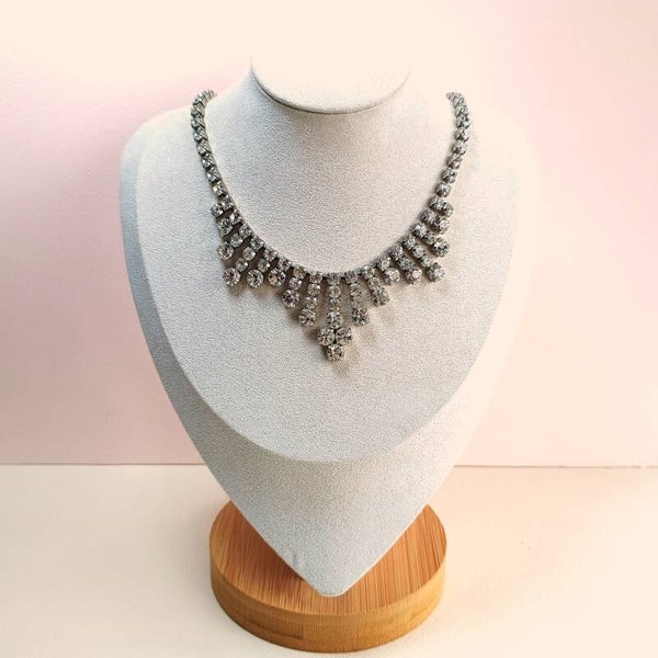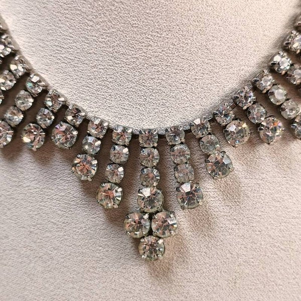 Vintage ketting van zilverkleurig metaal bezet met heldere strass uit de jaren '60-'80.