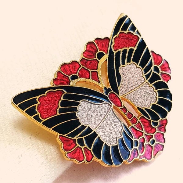 Fish vlinder cloisonné broche 70s