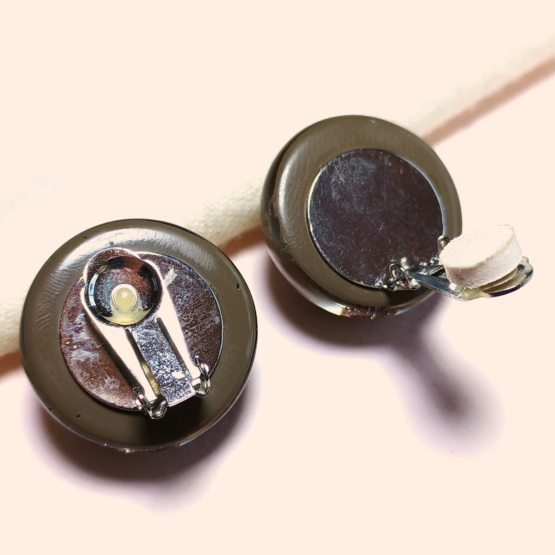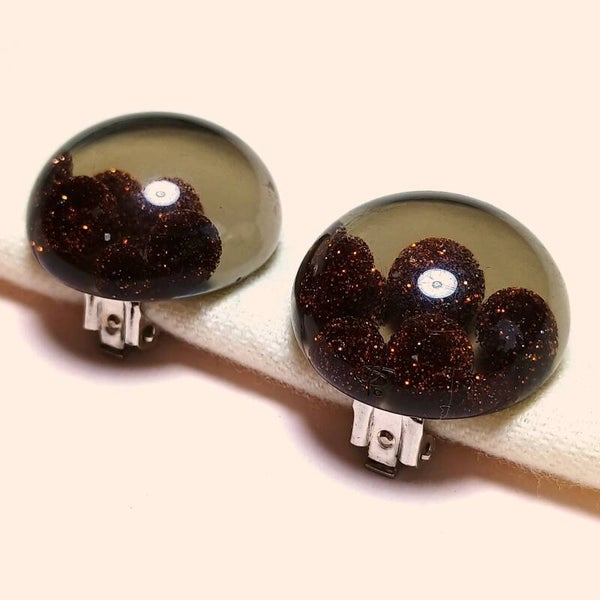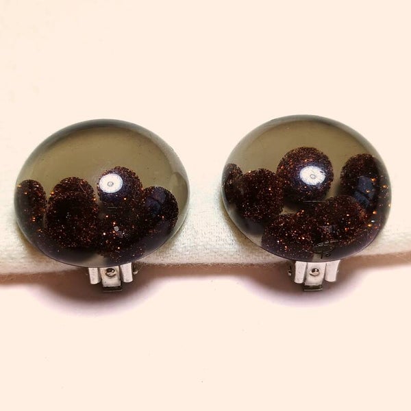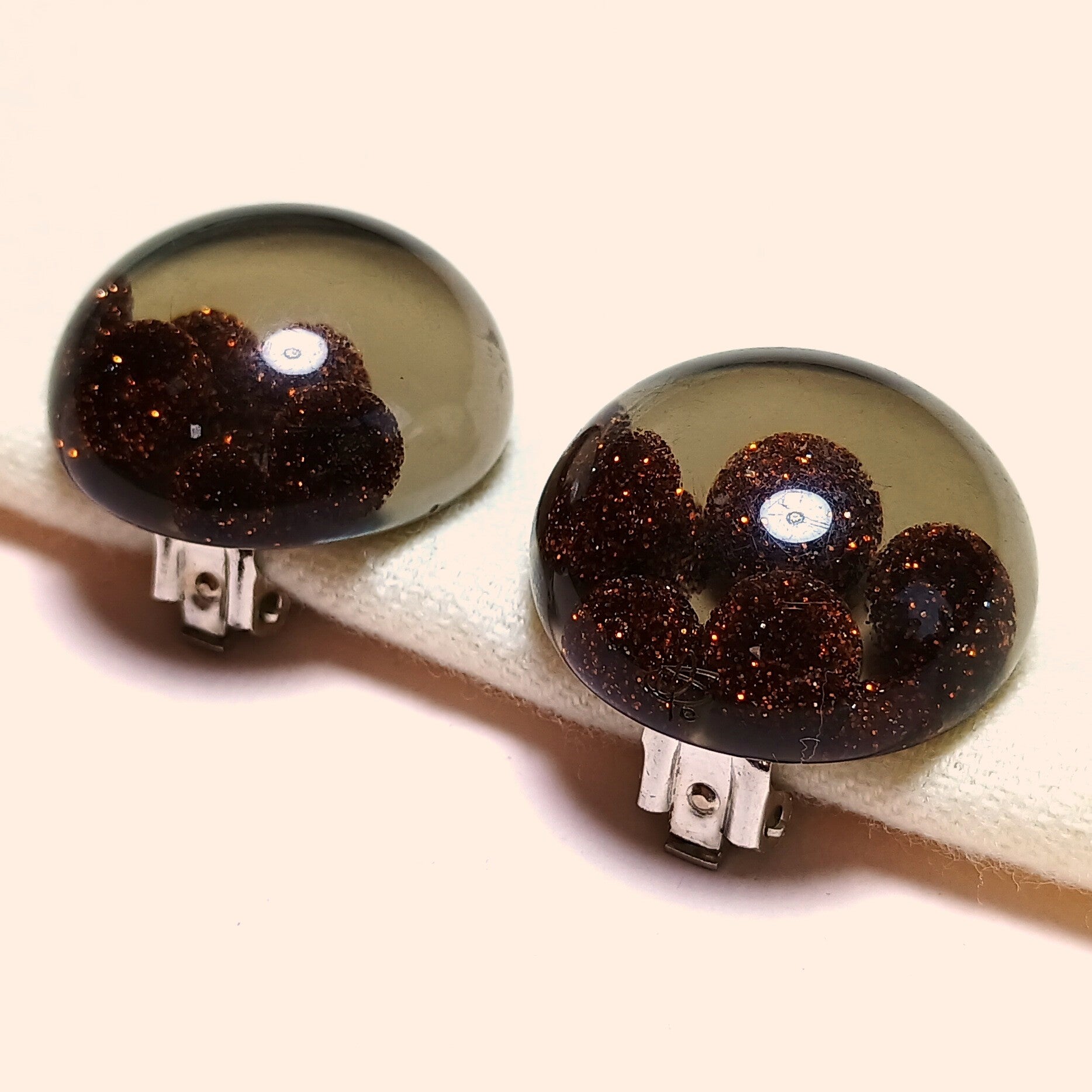Vintage oorclips met in kunsthars gevangen bruine glitterballetjes uit de jaren '80.