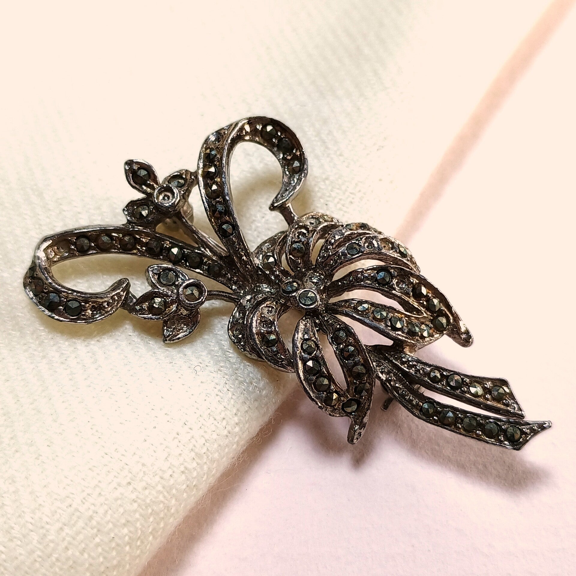 Vintage broche met bladeren bezet met marcasiet uit de jaren '50-'60.