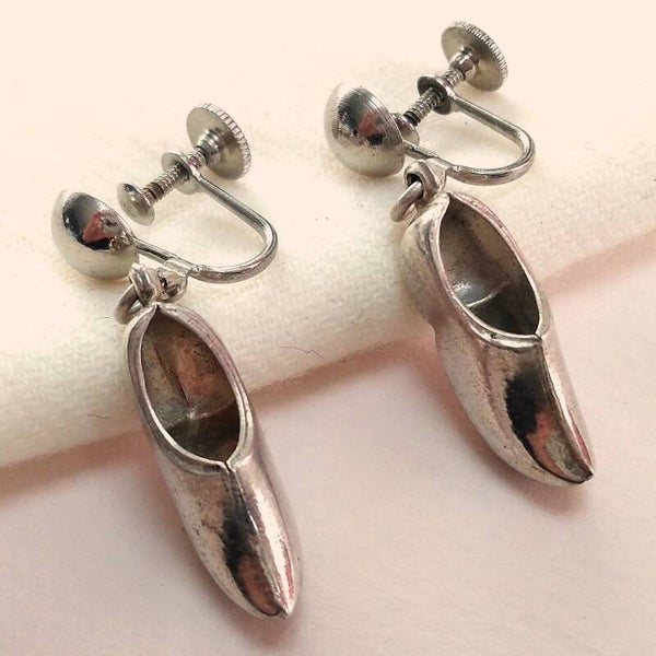 Vintage schroefoorbellen met zilverkleurige klompjes uit de jaren '70.