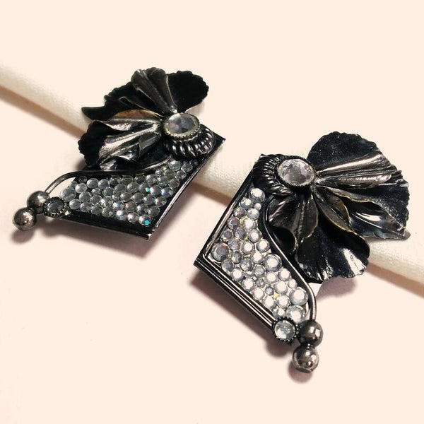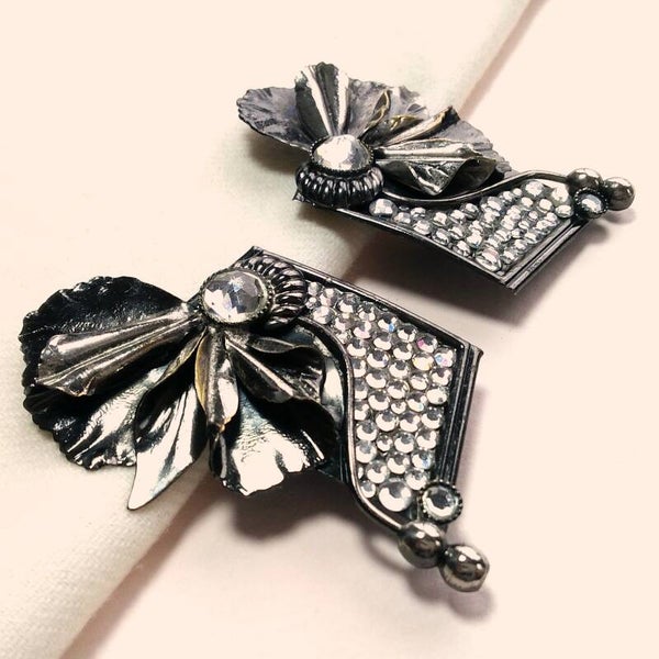 Vintage statement oorclips in Ermani Bulatti-stijl met floraal motief en heldere strass uit de jaren '80.