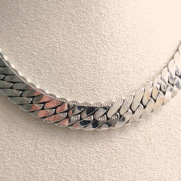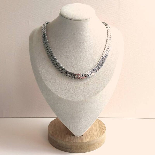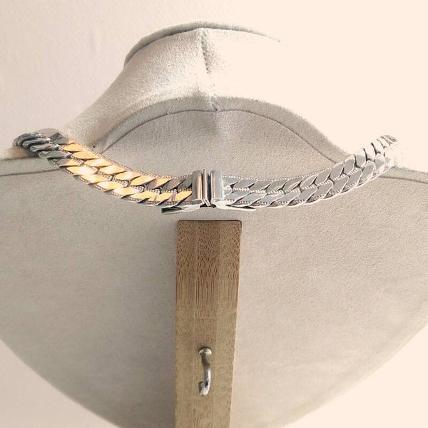 Grove vintage schakelketting van zilverkleurig metaal met schuifsluiting uit de jaren '70.