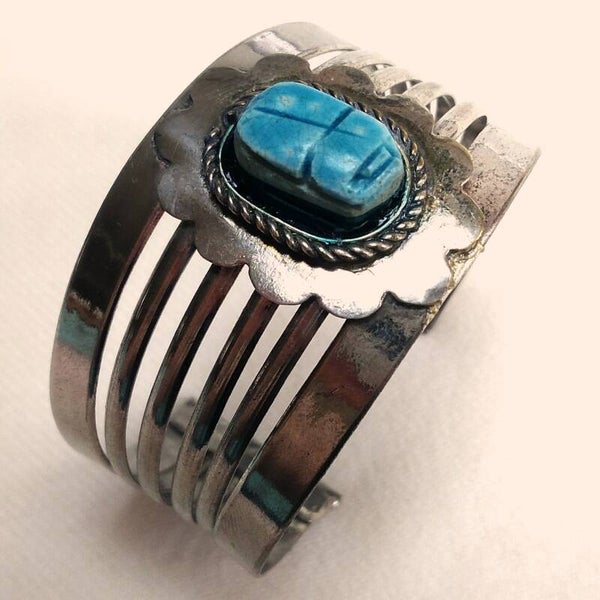 Vintage oorclips met turquoise geglazuurde scarabeeën uit de jaren '70.