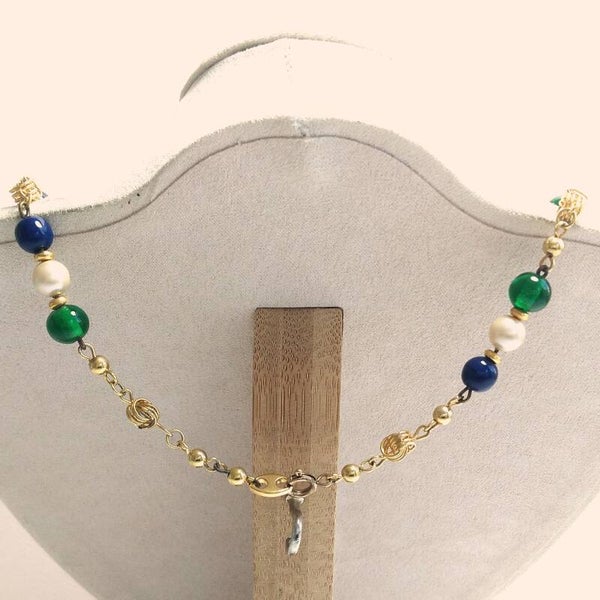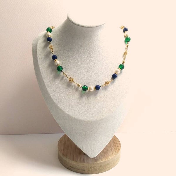 Vintage ketting in ketteltechniek met glazen en parelkralen uit de jaren '80-'90.