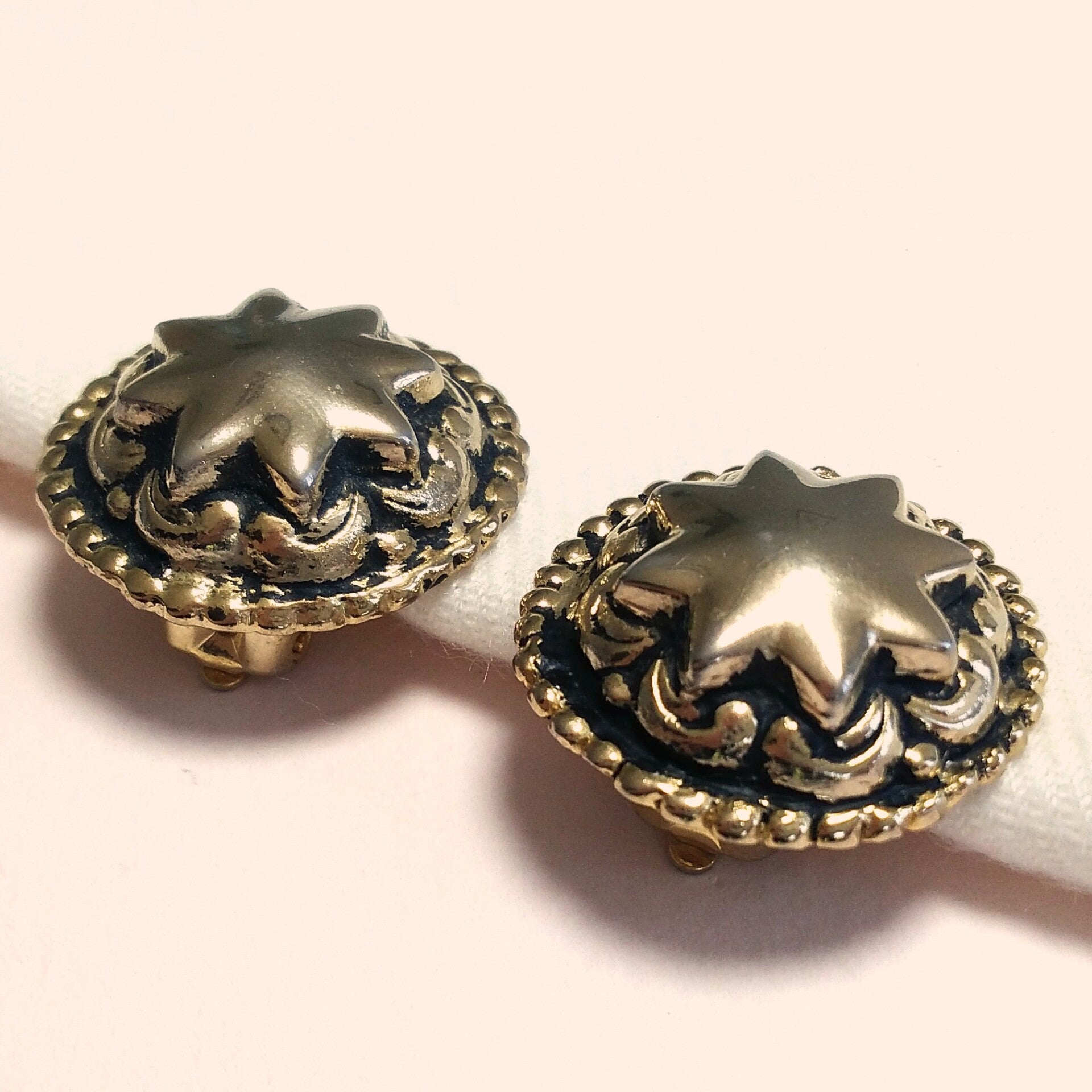 Vintage oorclips van verguld, geoxideerd metaal met ster en golfjes motieven uit de jaren '80.