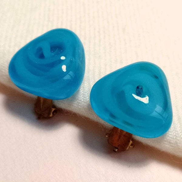 Vintage oorclips met glazen swirl lampwork cabochons uit de jaren '50-'60.